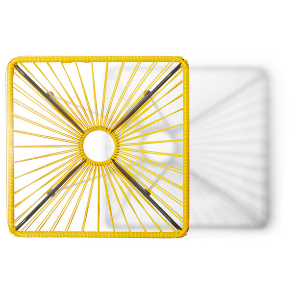 Ethically produced in Mexico, handwoven from phthalate-free and UV-resistant PVC cords atop a galvanized steel frame.