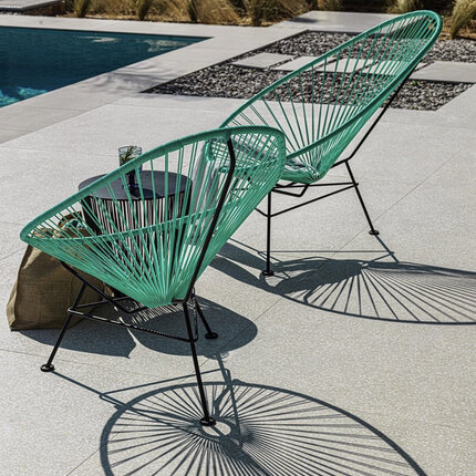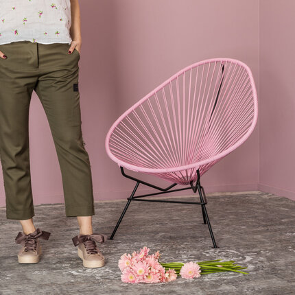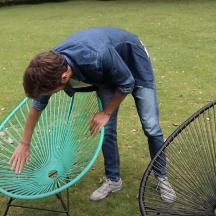For Acapulco chairs woven out of natural materials, like eco-friendly hemp rope and tule, please click here.