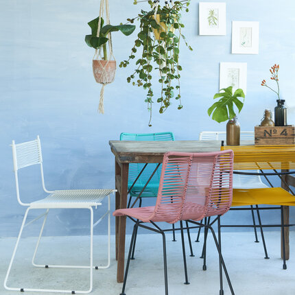 We love the Acapulco chair, which is the ultimate wire lounge chair or string chair. But there are also other wire chairs that are wonderful for both interiors and outdoors spaces, and perfect for dining areas.