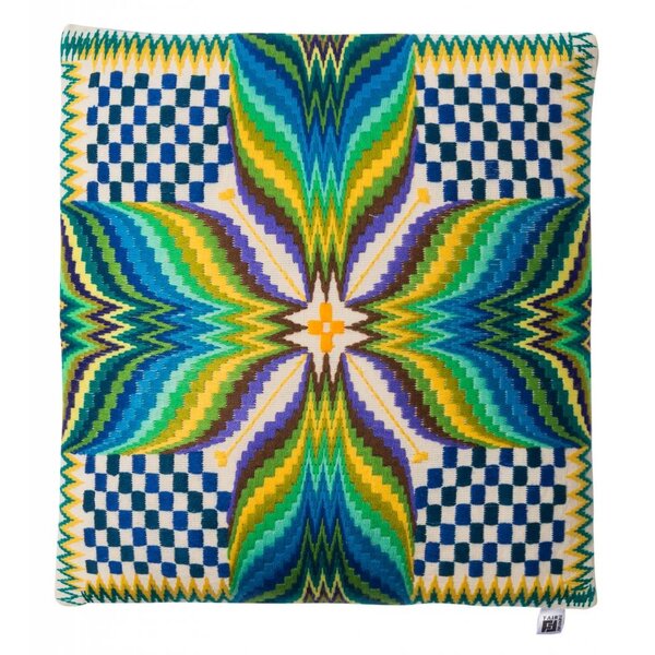 A unique item! The Fair Furniture Dilván cushions/pillows are hand embroidered by the women from the Mexican community Zacualpan. Typical are the original geometric shapes and colorful patterns.